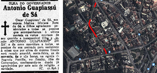 Antigo médico da Ilha, Antonio Batista Vilela Guapyassú (por vezes, creditado como Guapiassú, Guapiaçú ou ainda Guapiaçu) de Sá residia na rua que hoje leva seu nome, na fazenda de Bernardo José Serrão (da Ribeira), onde mantinha sua botica.