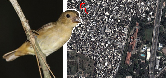 Portanto, "(ave) cor de chumbo que gosta de sementes".