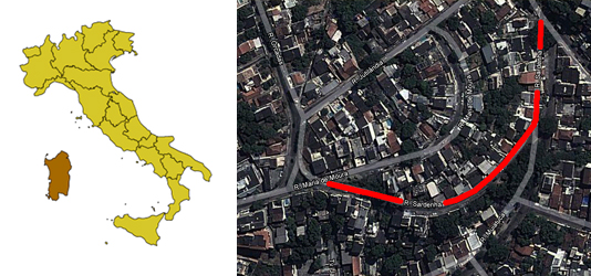 Mapa: A Sardenha (em marrom) no mapa da Itália (em ocre): Wikipedia